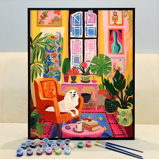 'Lounge Pup' by ColourMost™ | Original Paint by Numbers (16"x20" / 40x50cm)