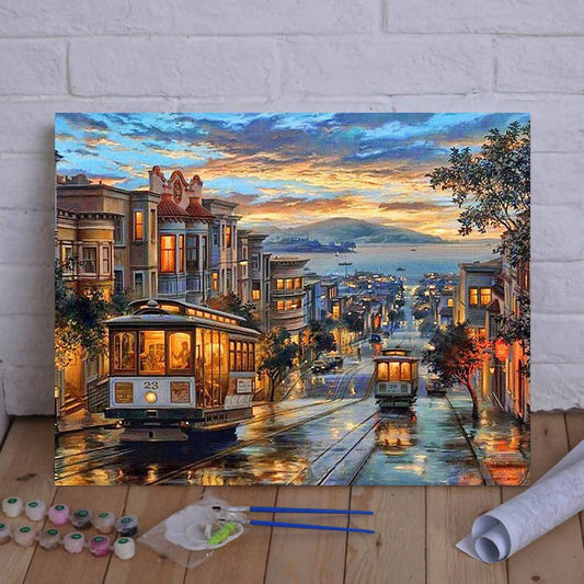 DIY Painting By Numbers - City Street (16"x20" / 40x50cm)