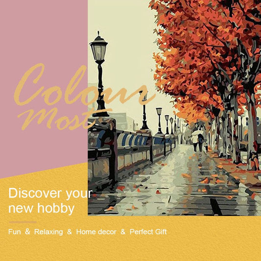 DIY Painting By Numbers - Autumn Street (16"x20" / 40x50cm)