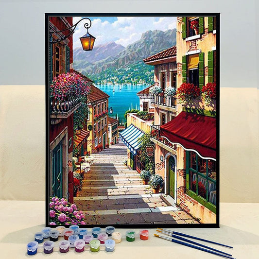 DIY Painting By Numbers - City Street (16"x20" / 40x50cm)