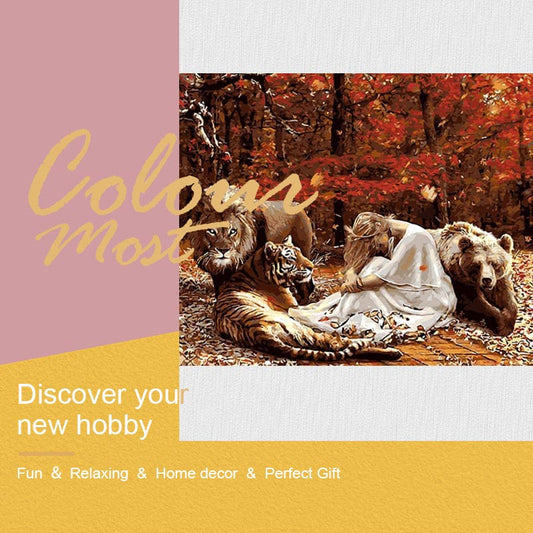 DIY Painting By Numbers - Lion, Tiger, Girl And Bear (16"x20" / 40x50cm)