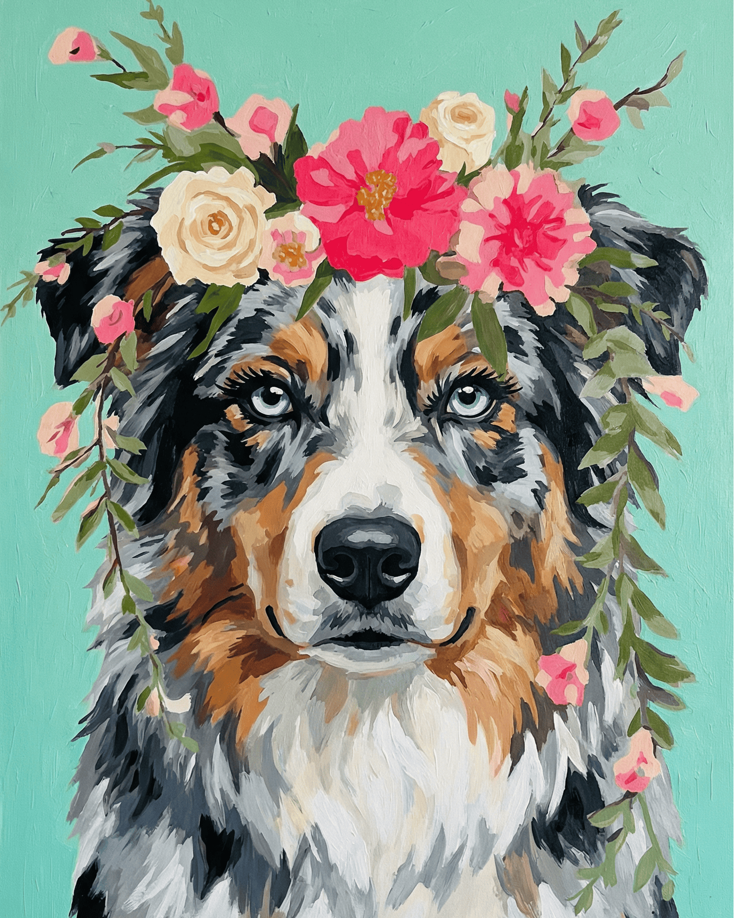 Australian Shepherd | "Blooming Pets" Original Paint by Numbers (16"x20" / 40x50cm)