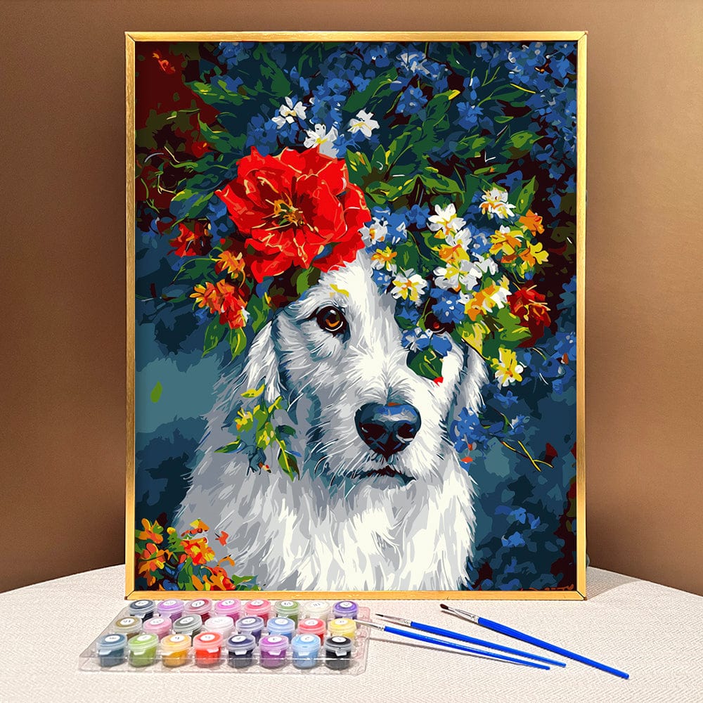 ColourMost™ DIY Painting By Numbers (EXCLUSIVE) - Dog in the flowers (16"x20")