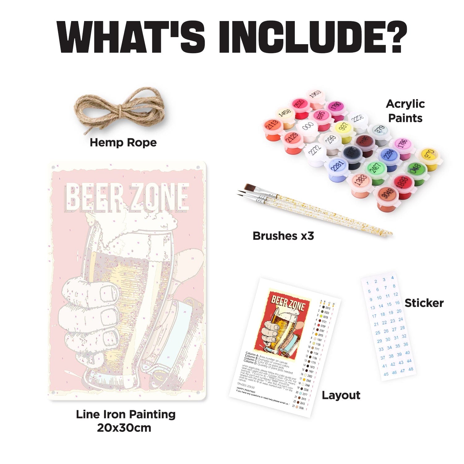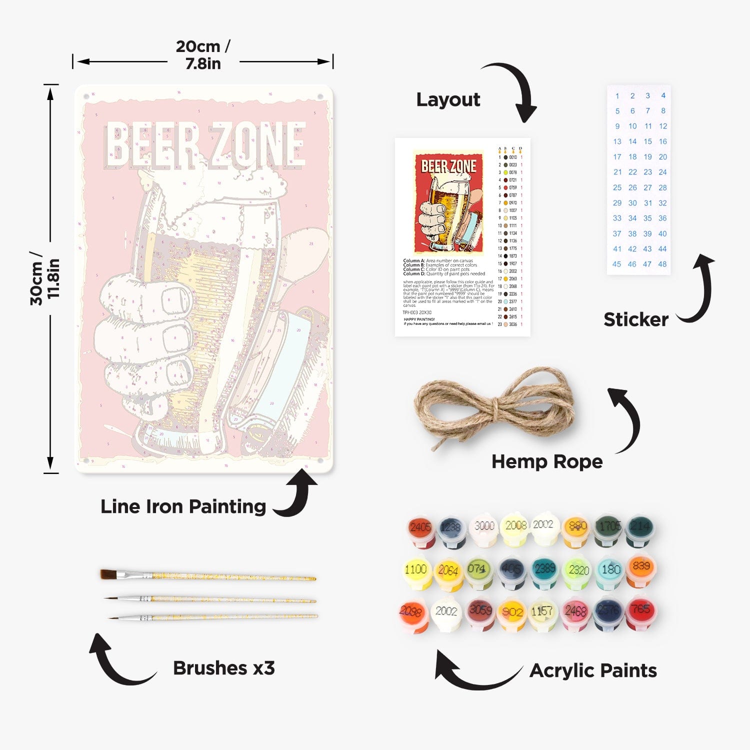 • 1 × Line Iron Painting (30 × 20 cm / 11.8" × 7.8")-Pre-printed metal poster with numbered sections for painting