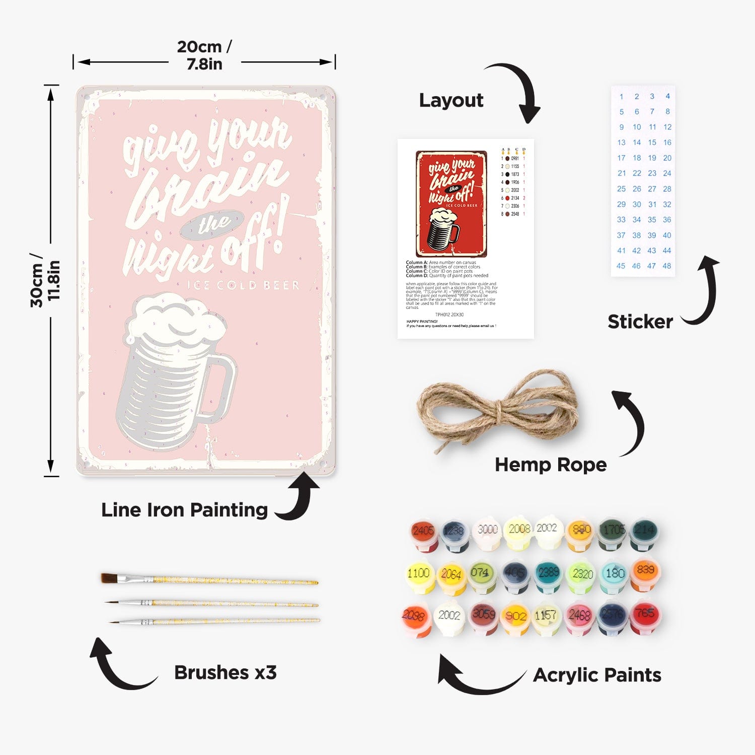 • 1 × Line Iron Painting (30 × 20 cm / 11.8" × 7.8")-Pre-printed metal poster with numbered sections for painting