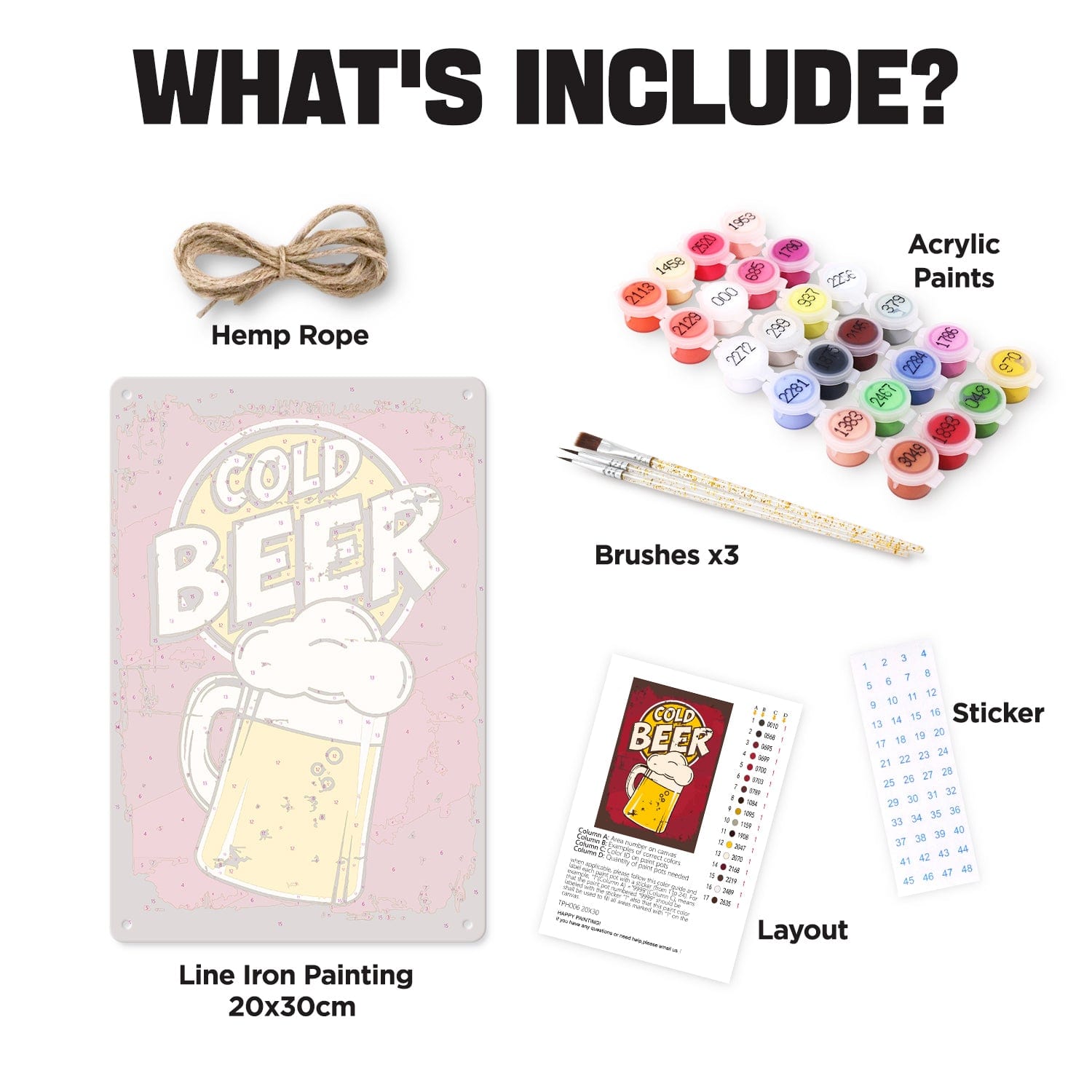 - 1 × Line Iron Painting (30 × 20 cm / 11.8" × 7.8")-Pre-printed metal poster with numbered sections for painting