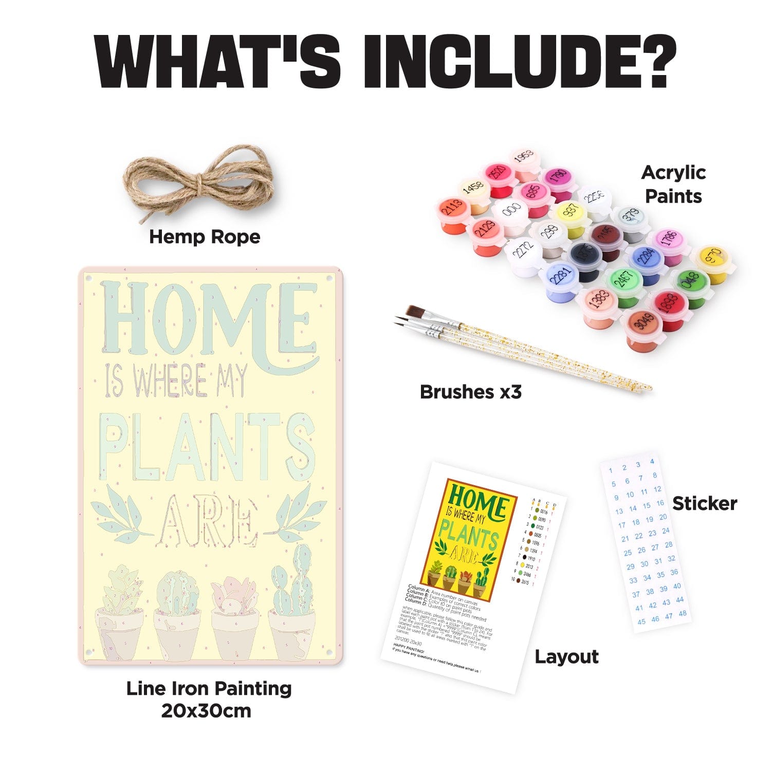 - 1 × Line Iron Painting (30 × 20 cm / 11.8" × 7.8")-Pre-printed metal poster with numbered sections for painting