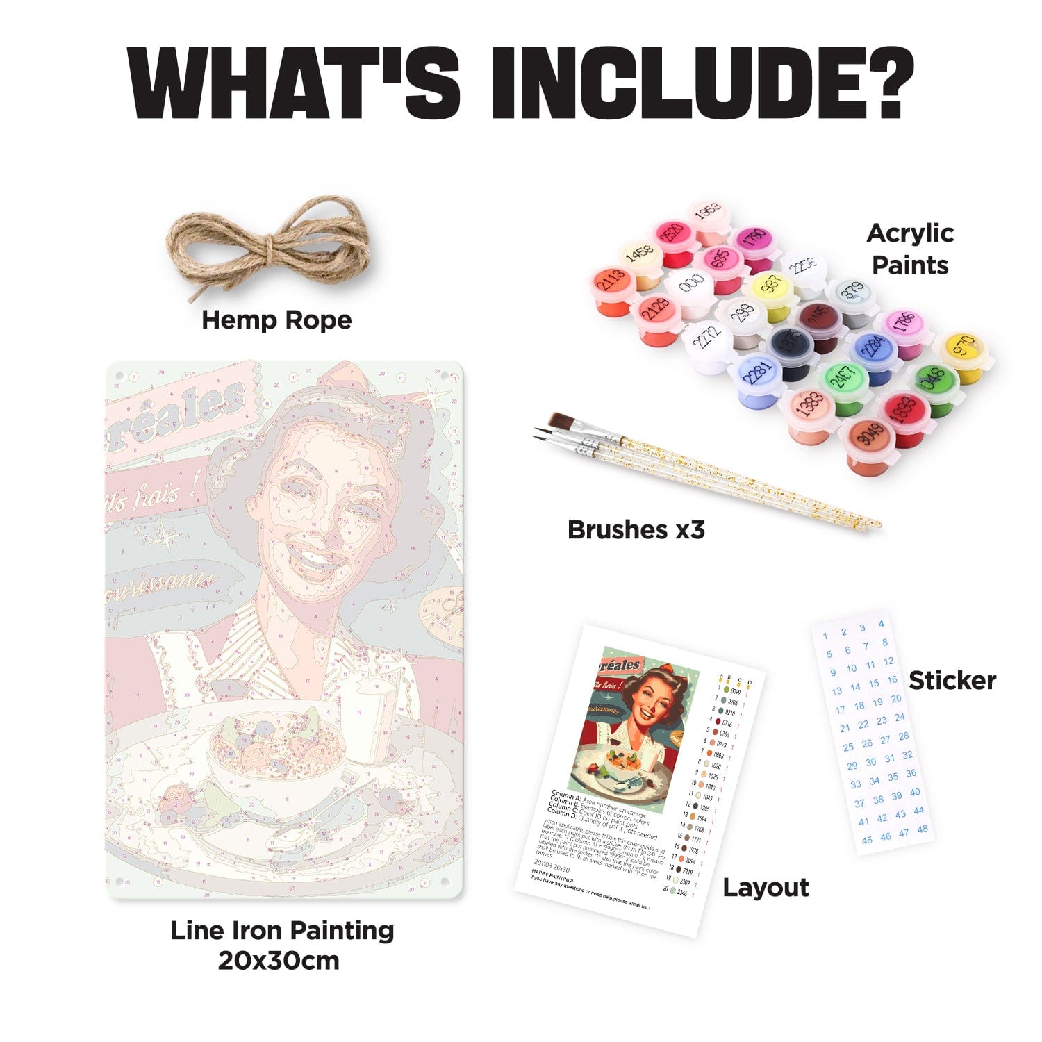 - 1 × Line Iron Painting (30 × 20 cm / 11.8" × 7.8")-Pre-printed metal poster with numbered sections for painting