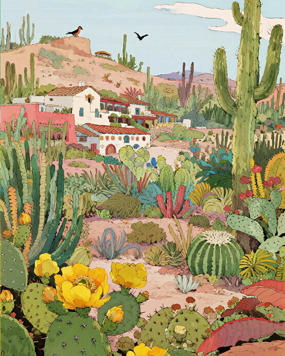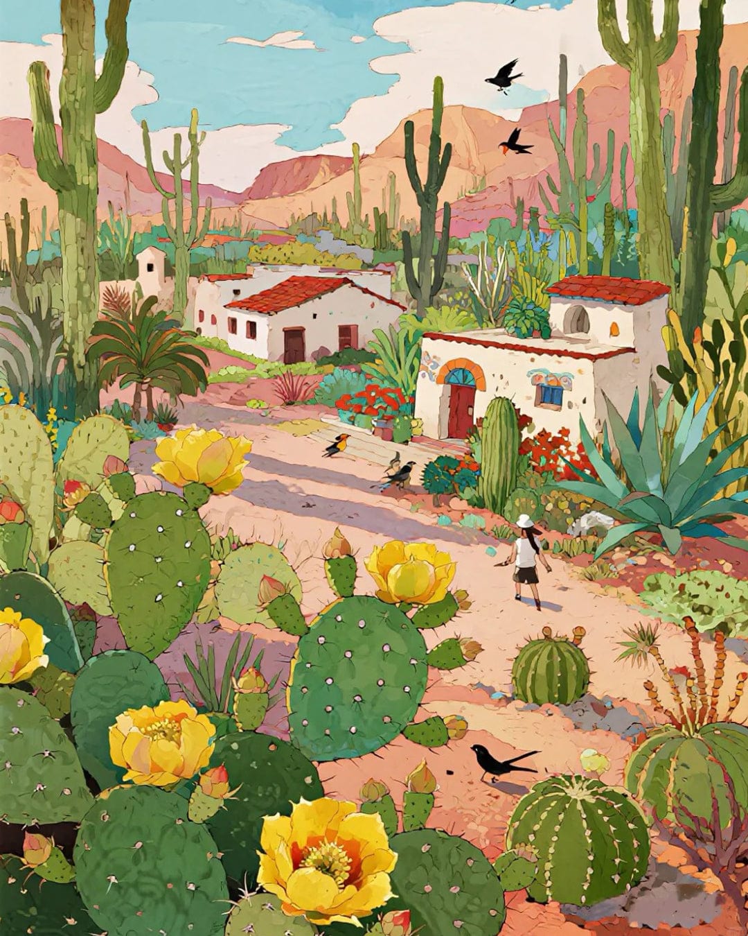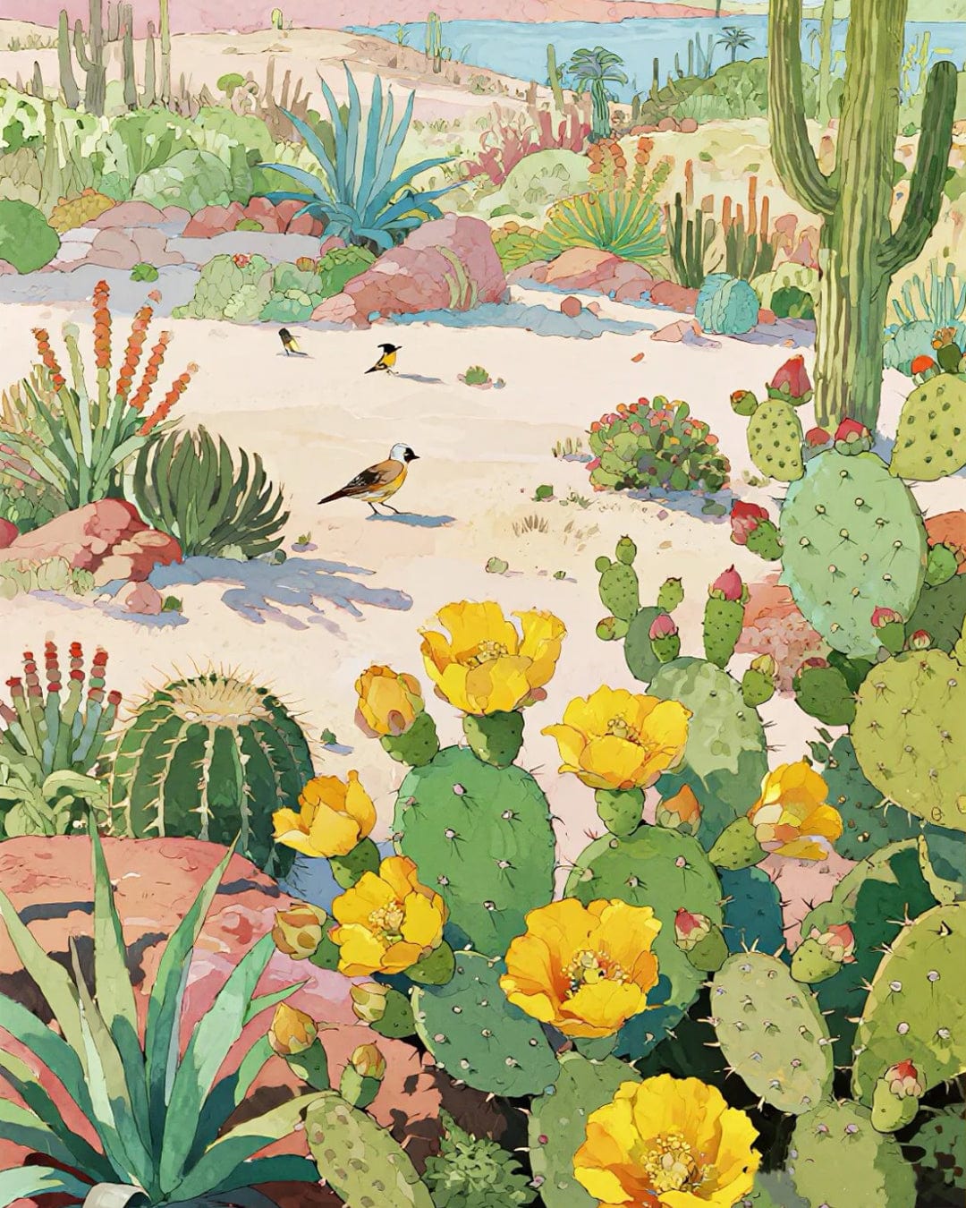 🌵 Each brushstroke captures the warmth of the sun, the resilience of the desert, and the quiet beauty of blooming cacti.