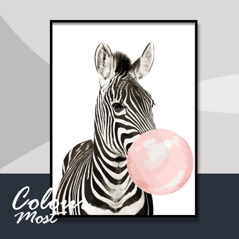 DIY Painting By Numbers - A zebra blowing bubbles (16"x20" / 40x50cm)
