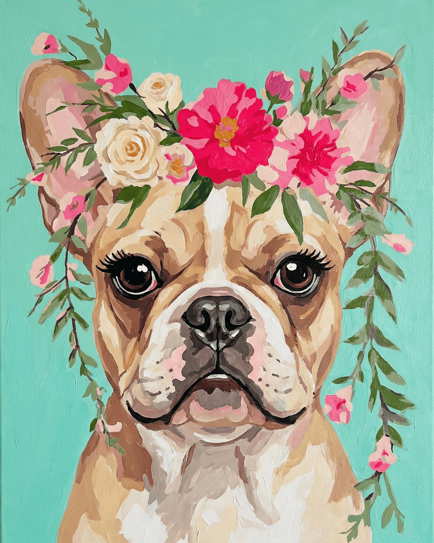 French Bulldog | "Blooming Pets" Original Paint by Numbers (16"x20" / 40x50cm)