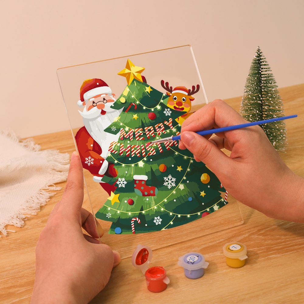 LED Santa & Reindeer Christmas Tree Paint by Numbers Kit – Light Up Your Holidays!
