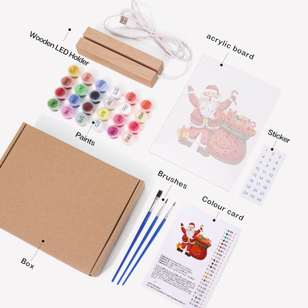LED Santa with Gift Bag Paint by Numbers Kit – A Festive DIY Craft!