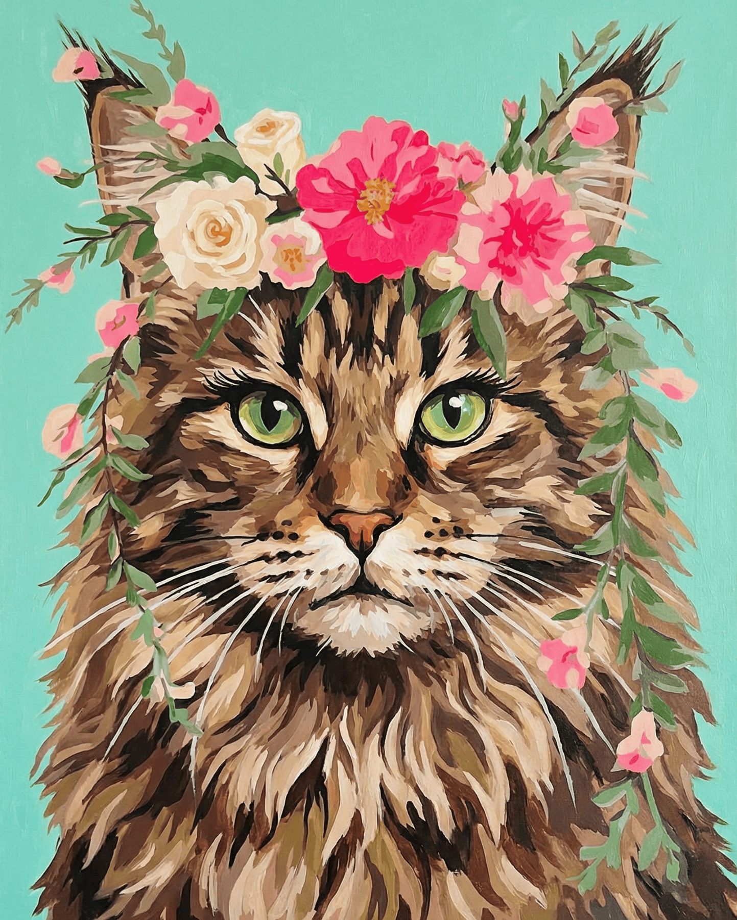 Maine Coon | "Blooming Pets" Original Paint by Numbers (16"x20" / 40x50cm)