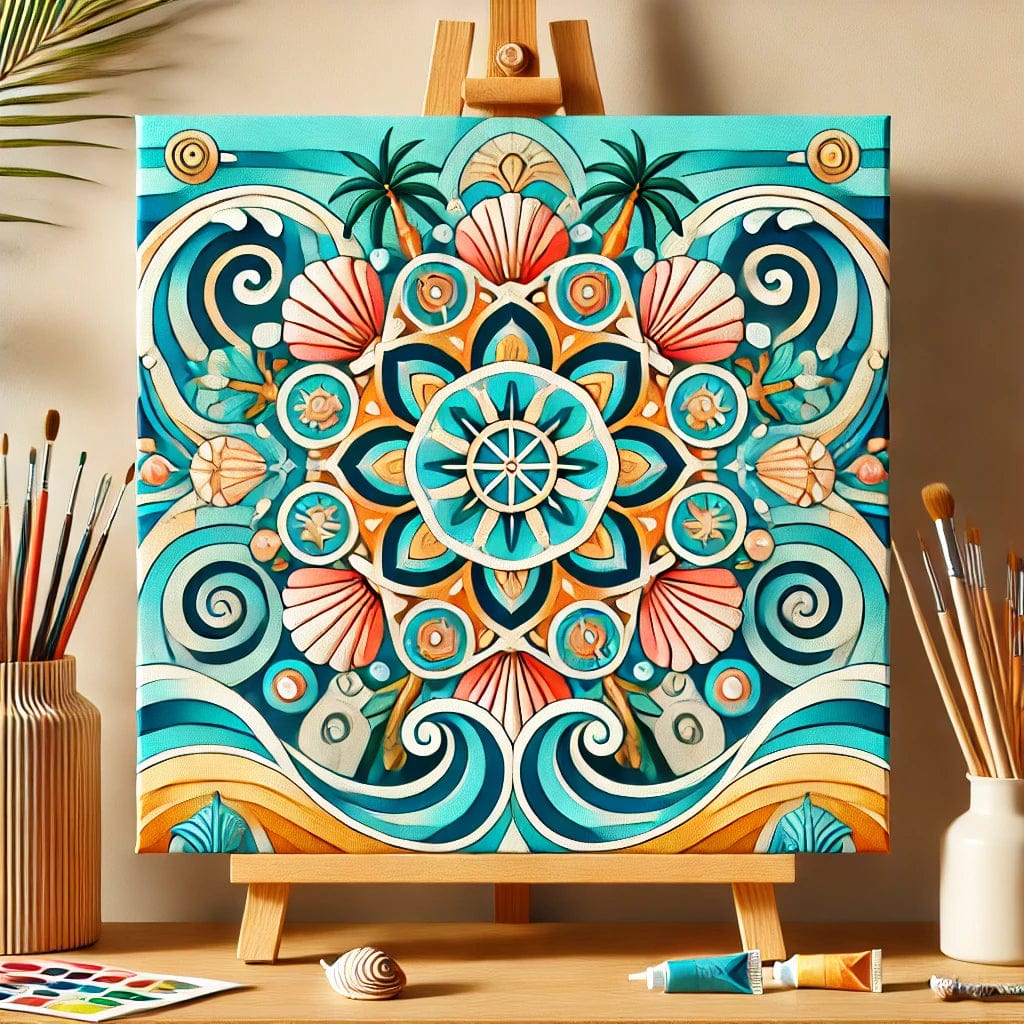 "Serenity Mandalas" Series - Beach/Ocean P24#02 | Original 🎨 Paint by Numbers | 💎 Diamond Painting (16"x16" / 40x40cm)