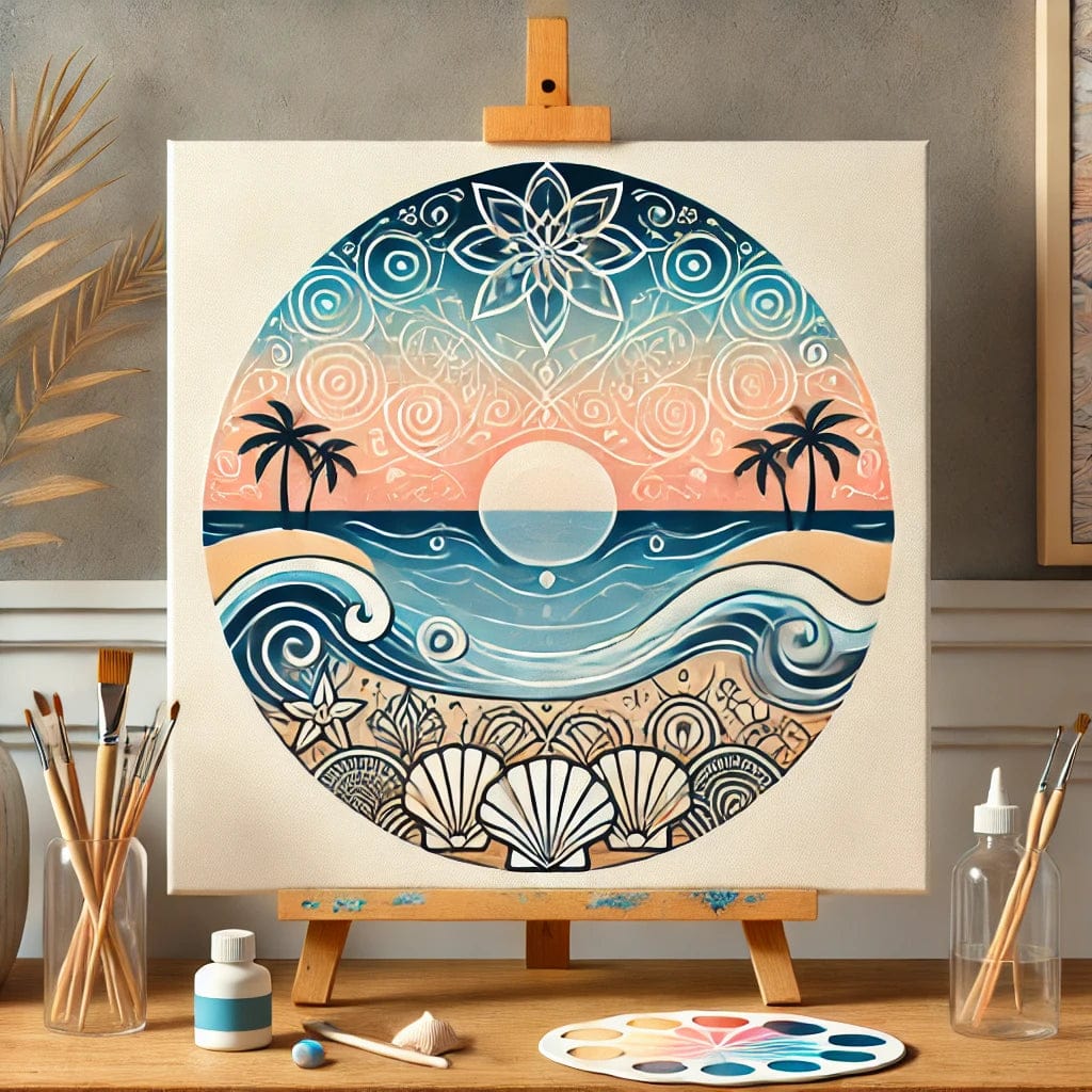 "Serenity Mandalas" Series - Beach/Ocean P24#10 | Original 🎨 Paint by Numbers | 💎 Diamond Painting (16"x16" / 40x40cm)