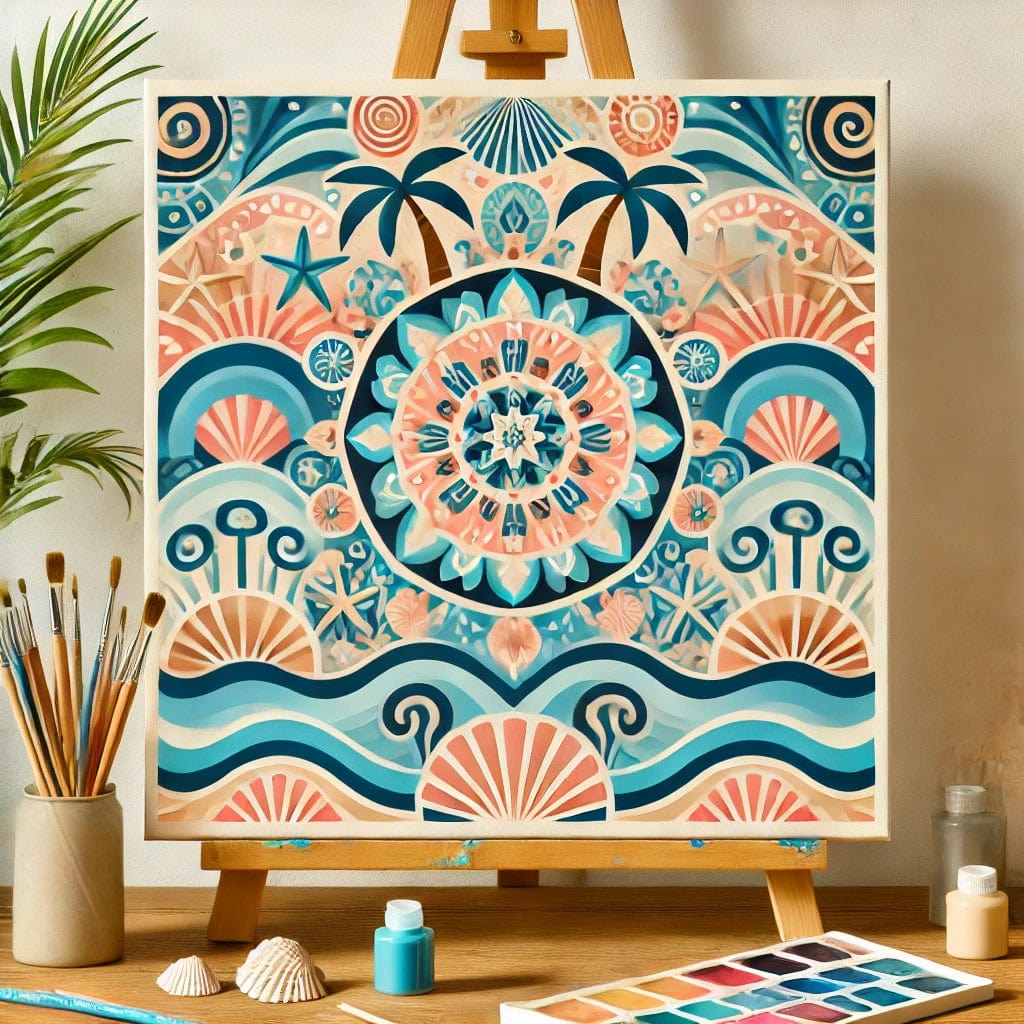 "Serenity Mandalas" Series - Beach/Ocean P24#21 | Original 🎨 Paint by Numbers | 💎 Diamond Painting (16"x16" / 40x40cm)