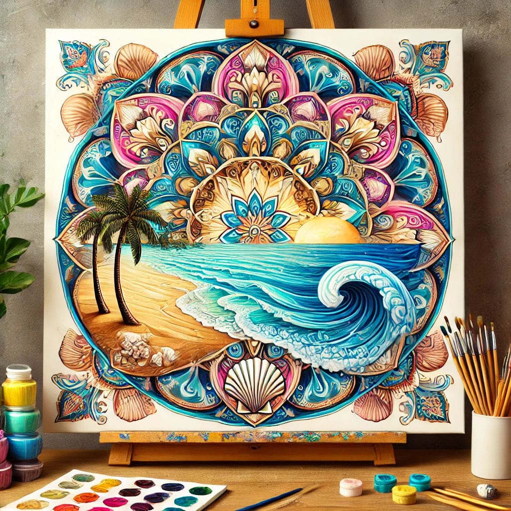 "Serenity Mandalas" Series - Beach/Ocean P24#23 | Original 🎨 Paint by Numbers | 💎 Diamond Painting (16"x16" / 40x40cm)