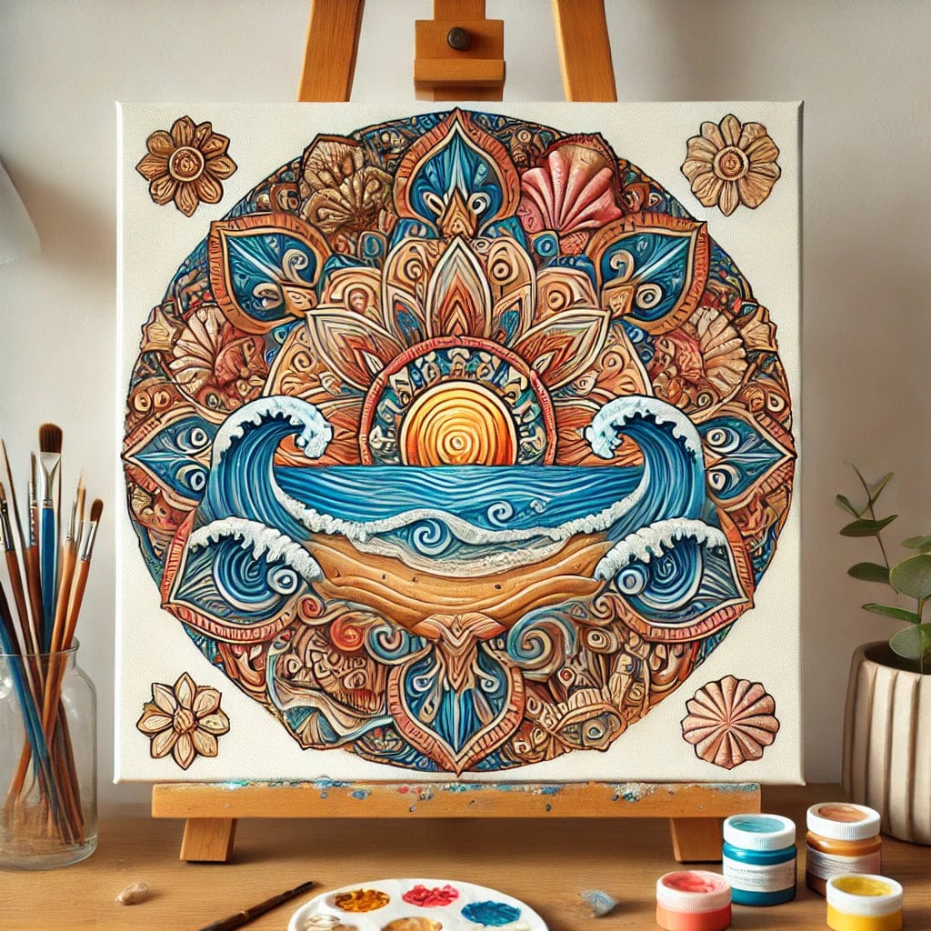 "Serenity Mandalas" Series - Beach/Ocean P24#24 | Original 🎨 Paint by Numbers | 💎 Diamond Painting (16"x16" / 40x40cm)