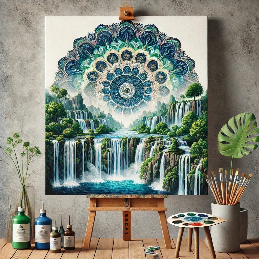 "Serenity Mandalas" Series - Waterfall P28#07 | Original 🎨 Paint by Numbers | 💎 Diamond Painting (16"x20" / 40x50cm)