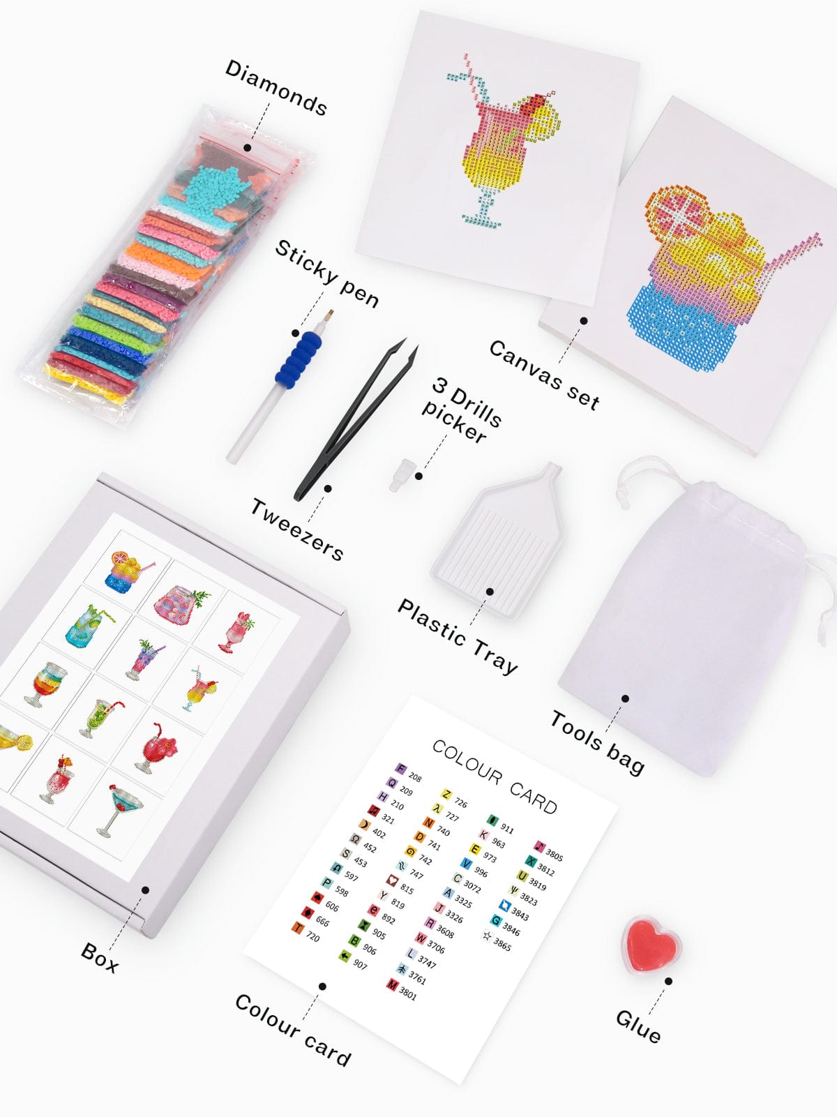 ColourMost™ Mini Diamond Painting Series #01: 'Summer Drinks' - Frameless 12-in-1 Set (6"x7" / 15x18cm)