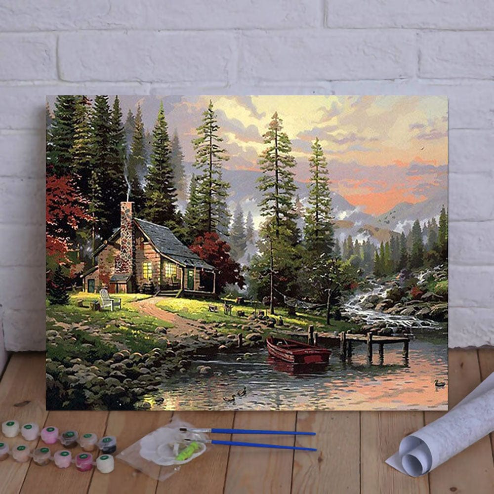 DIY Painting By Numbers - Cabin in the woods