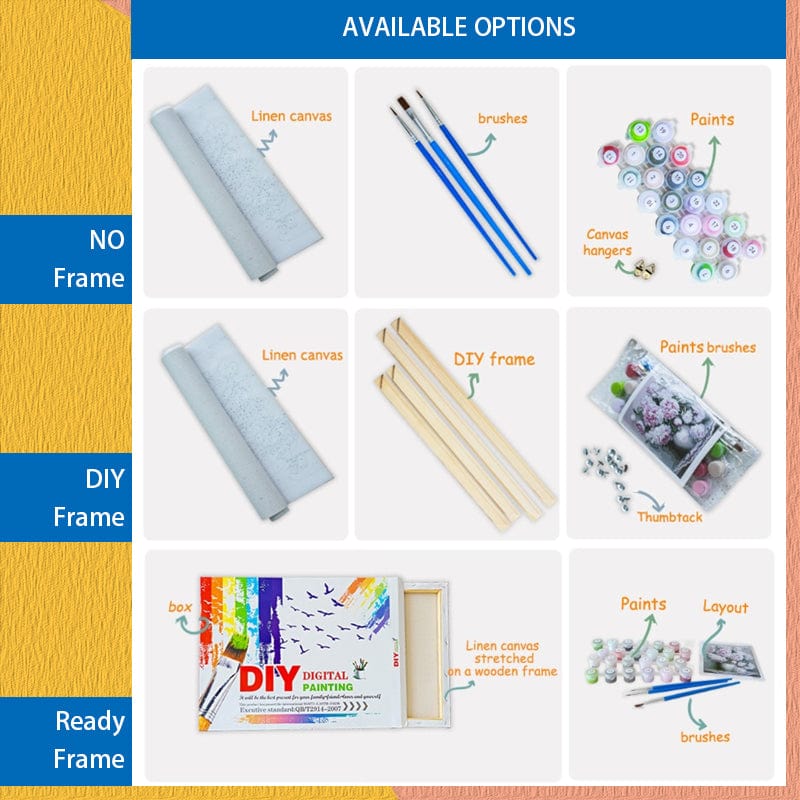 - Ready Frame: Pre-stretched, ready to paint and hang.