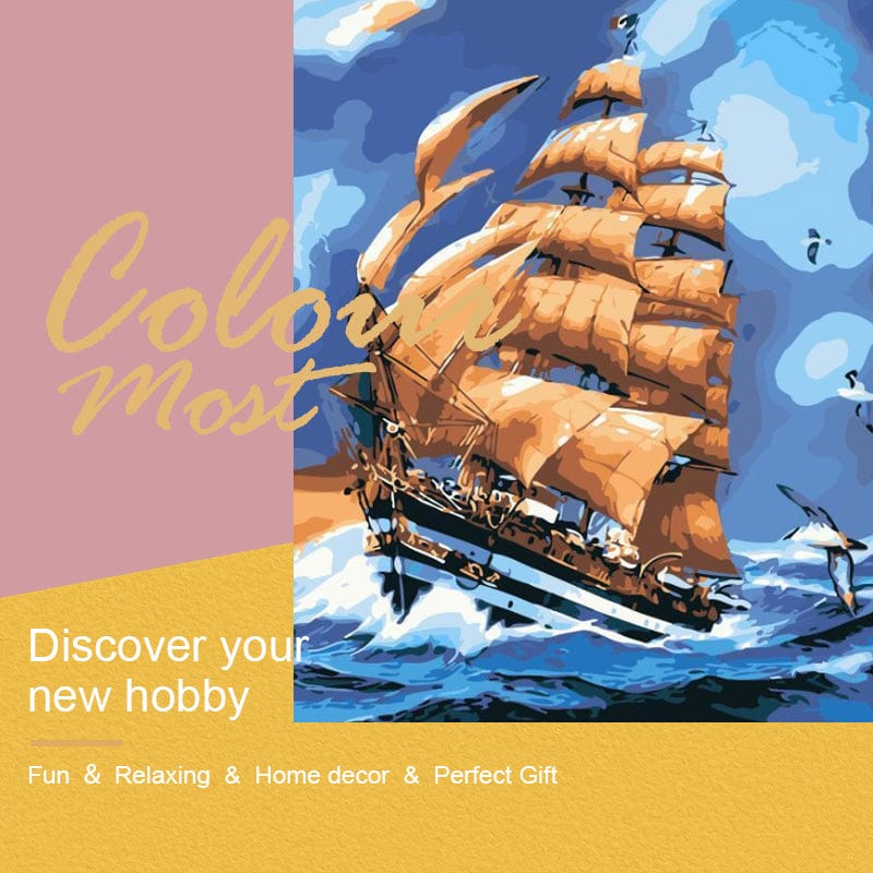 DIY Painting By Numbers - Boat and Seagull (16"x20" / 40x50cm)