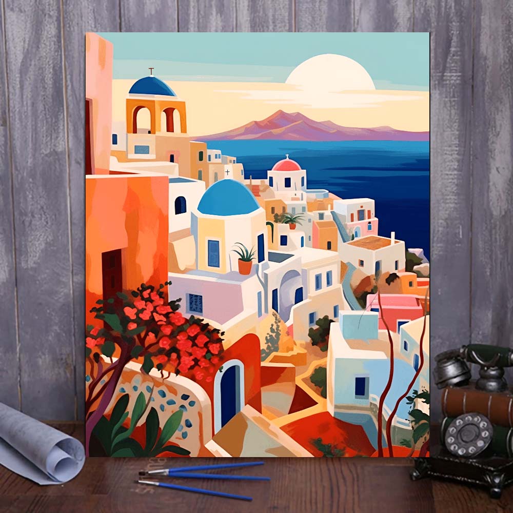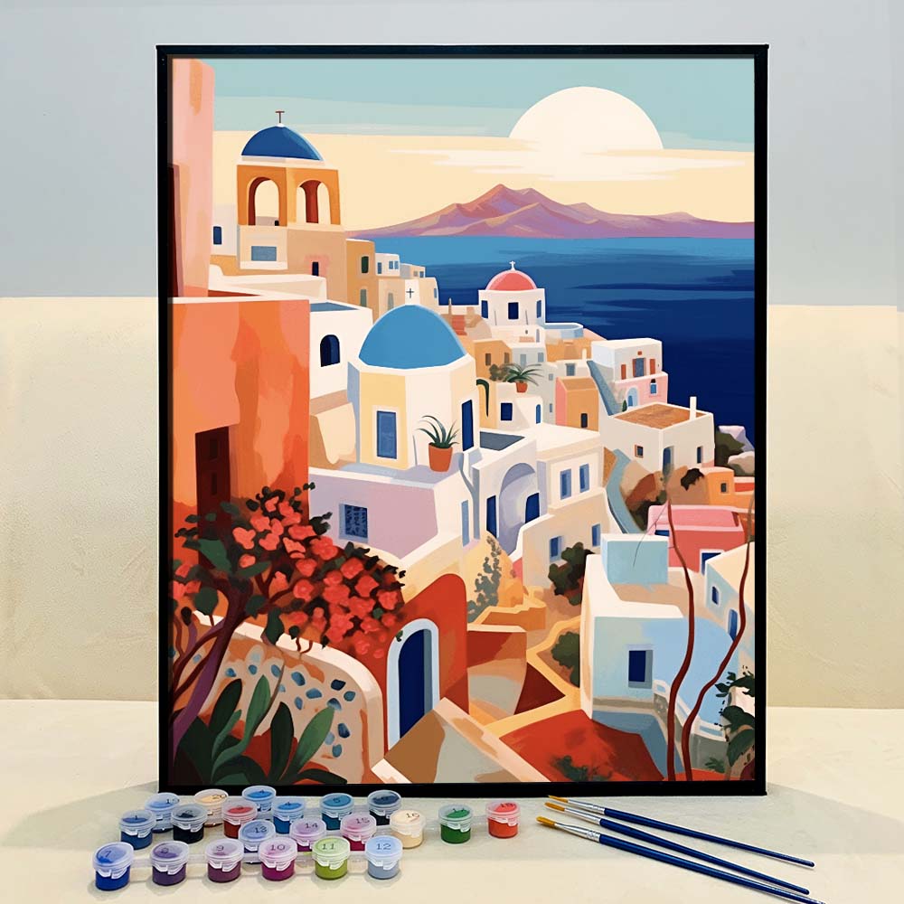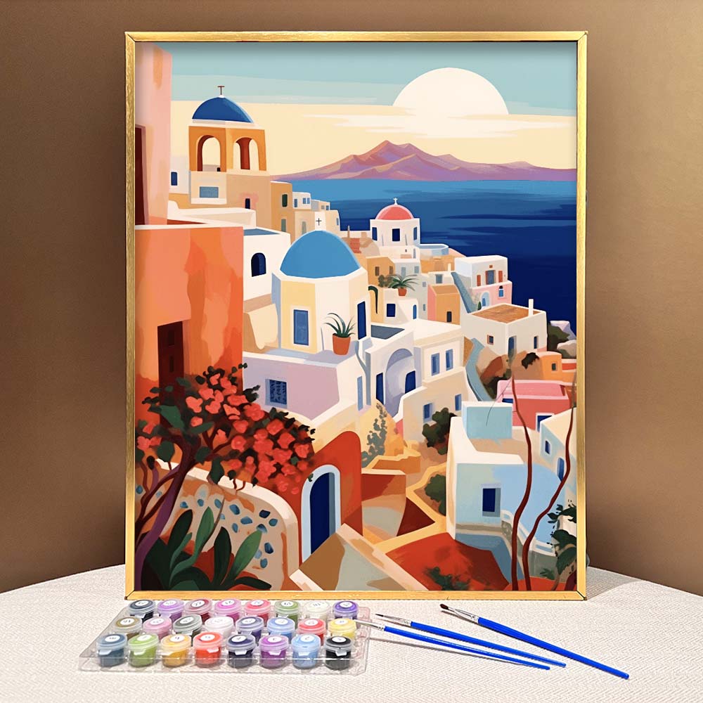 Ready to wow your friends and tickle your artistic fancy? Grab our "Santorini, Greece" Original Series DIY Art kit and step into the grand world of painting. No experience? No problem!
