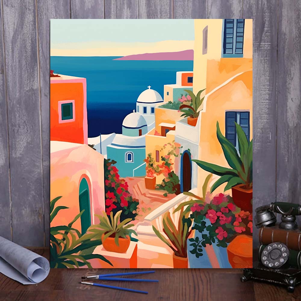 "Santorini, Greece" Series by ColourMost™ #06 - 'Rhapsody' | Original Paint by Numbers (16"x20" / 40x50cm) | Also ship to UK, CA, AU, and NZ