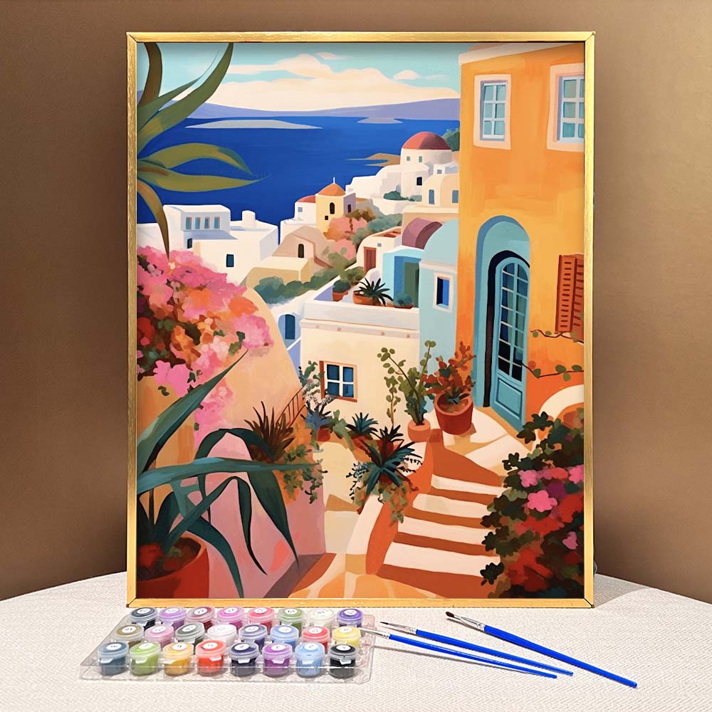 Ready to wow your friends and tickle your artistic fancy? Grab our "Santorini, Greece" Original Series DIY Art kit and step into the grand world of painting. No experience? No problem!