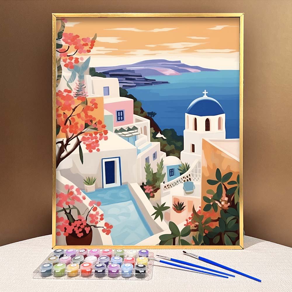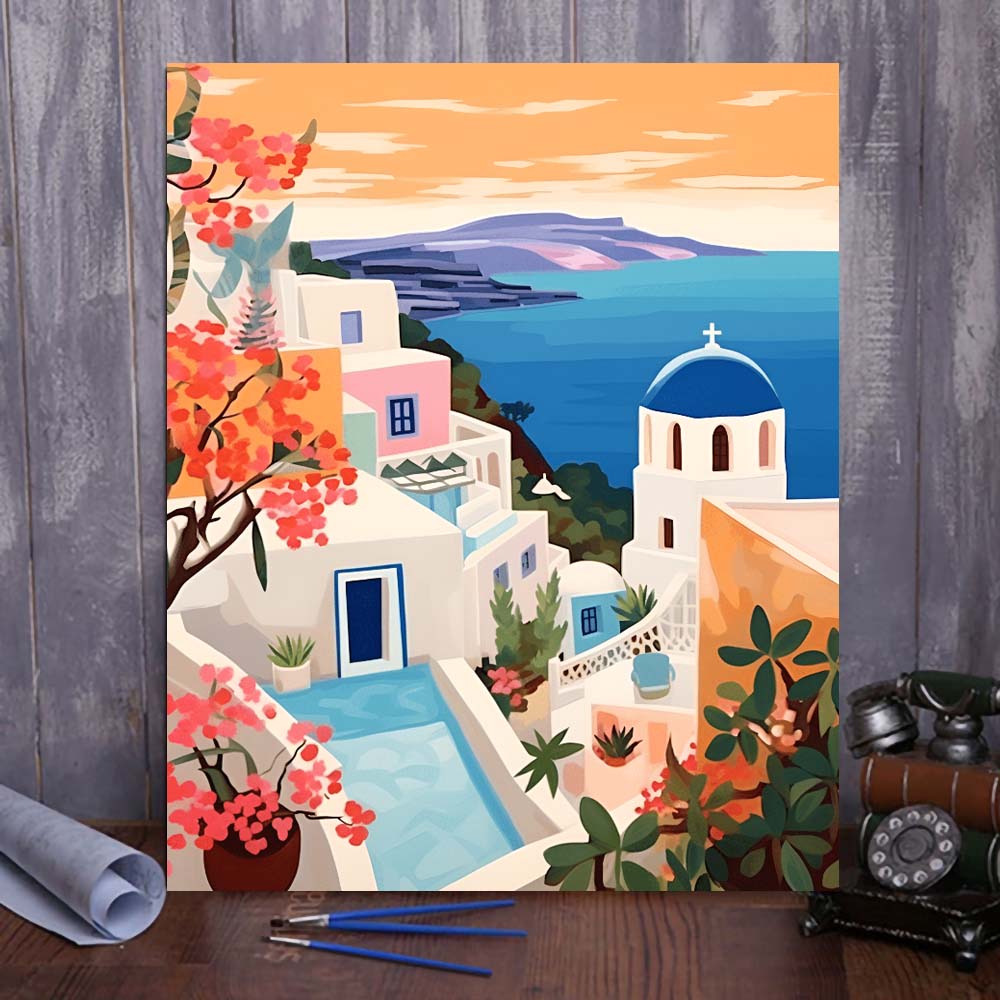 "Santorini, Greece" Series by ColourMost™ #09 - 'Aurelia' | Original Paint by Numbers (16"x20" / 40x50cm) | Also ship to UK, CA, AU, and NZ