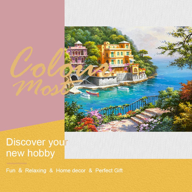 DIY Painting By Numbers - Seaside garden (16"x20" / 40x50cm)